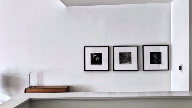 And below is the view from the hallway. The photos are hung high so that people sitting on the bench will not bang their heads on the frames. There’s plenty of white space around to provide maximum punch.