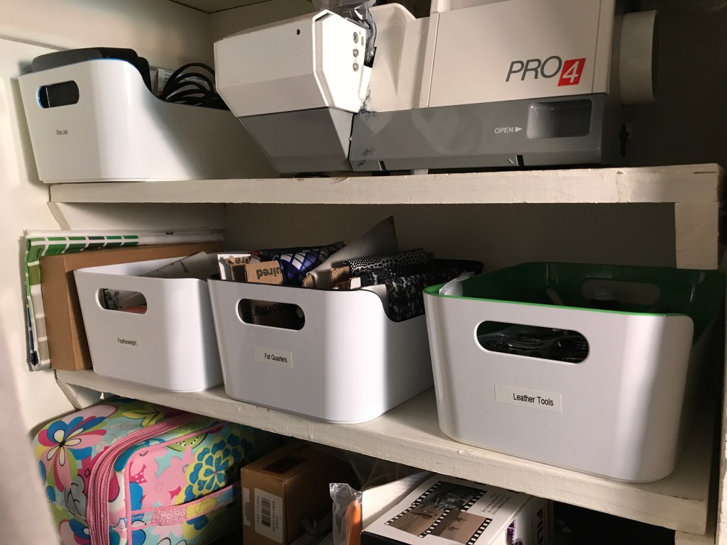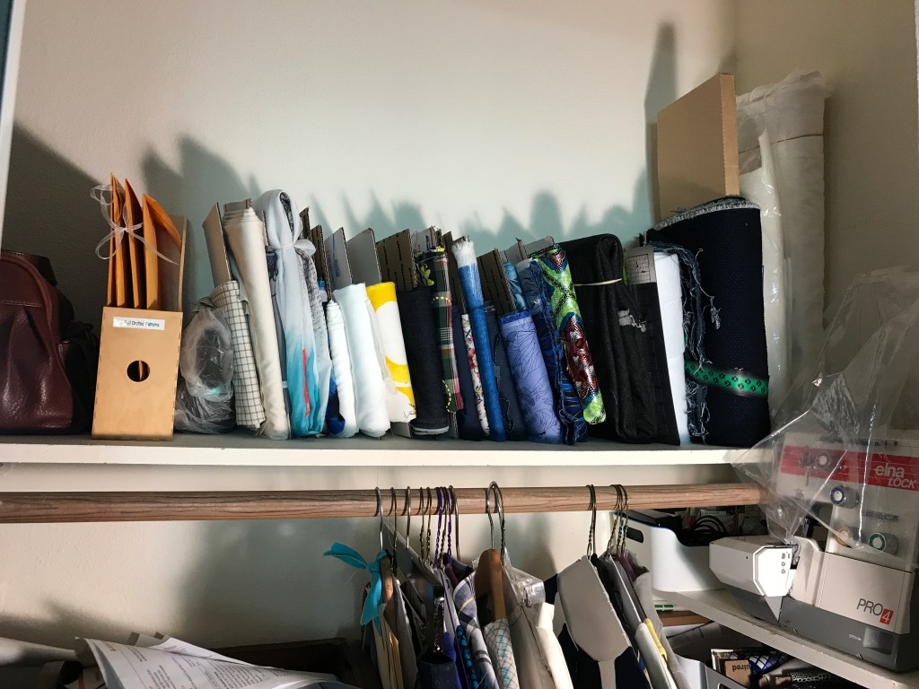 Virginia Wolff wrote about the importance of a room of one’s own as space to work. In November, I began to clear a tiny corner of the closet for organized access to my sewing tools, fabric and equipment.