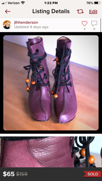 The next thing I’ve been working on is figuring out how to sustainably reduce my closet contents. Previously, I tried ThredUp to sell clothing and shoes and that was a good experience. I sent 5 garments in, they accepted 4 and sold all of them. ThredUp set the price but allowed me to adjust it. I didn’t bother because I figured their AI was better equipped than I to suggest a price we’d both benefit from. The only downside is the time it takes to list an item. It could be months between the time you put it in a ThredUp clean-out bag and the time it gets listed. And it could be another month(s) before it sells.