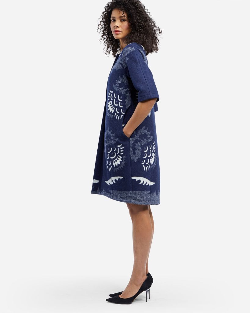 The cashier told me that Pendleton offered a coat called the Flora Zelda made from similar fabric. I found it on the website. The coat shown below was no longer available but it was described by Pendleton as: