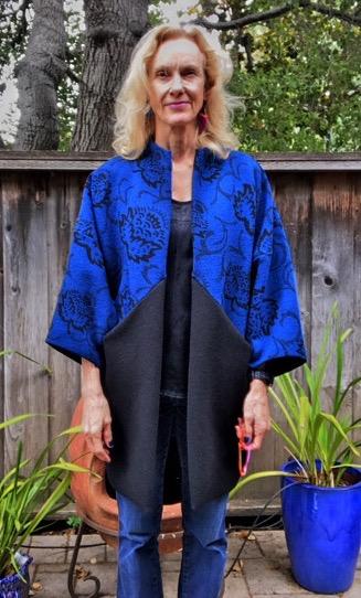 I imagined putting the melton in the back, the triangular back sides, the sleeves, the front top and finally decided on the front bottom. The top front would have been best to hold the weight of the melton but I didn’t like that so much visually. Putting the black on the bottom front would make the graceful diagonal lines pop right out.