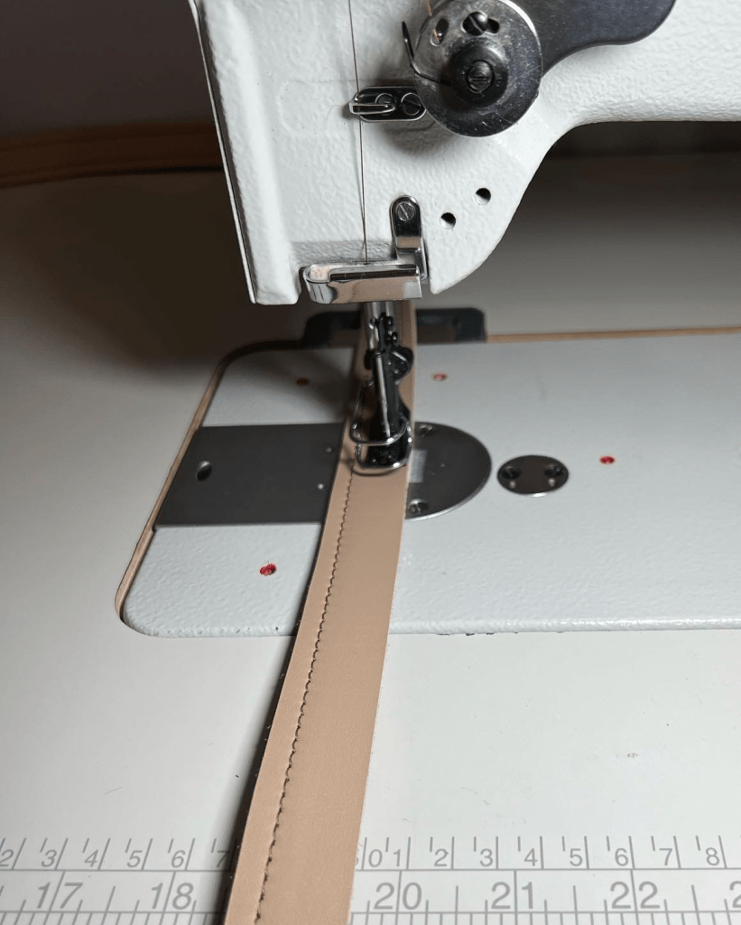 - Stitch down the other side of the strap assembly.