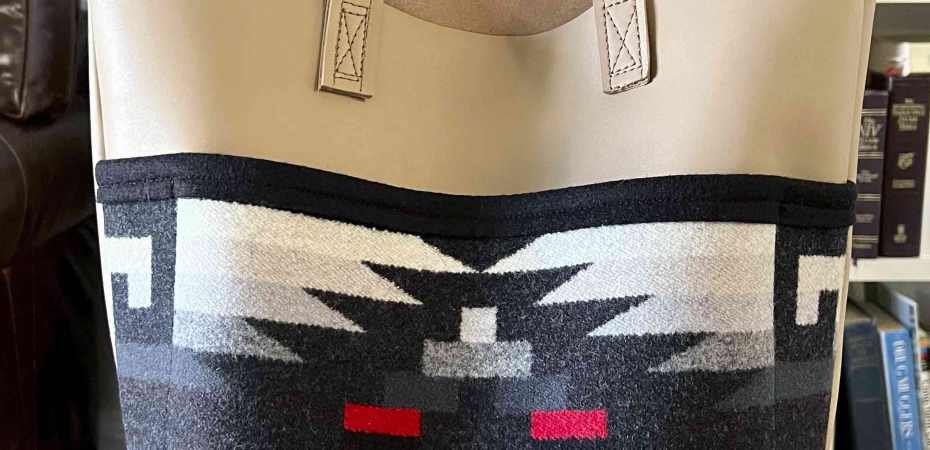 The fabric is Rio Grande wool from Pendleton Woolen Mills and the wool bias tape is from PWM. The leather is from a hide that I bought from Tandy to repair a belt (how I did it post coming soon). I was able to sew leather using the Consew industrial sewing machine at Needles Open Studio.