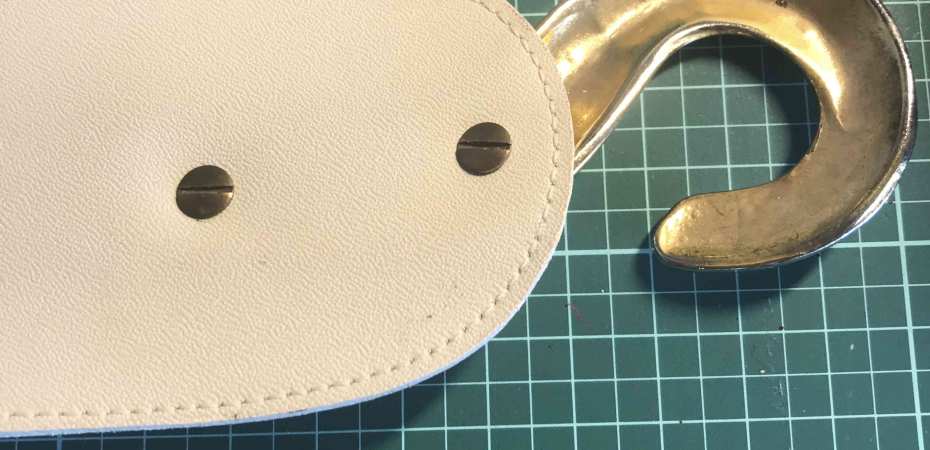 I placed the new pieces of leather wrong sides together and sewed along the edges. I did this on my home Singer Industrial Sewing Machine because at the time I did not have access to a commercial industrial sewing machine. I do have access now and may cut the leather out in another color and sew it with that machine for more beautiful stitching. For now, here’s to slow fashion and make and mend! Old hardware with new leather can look quite good!