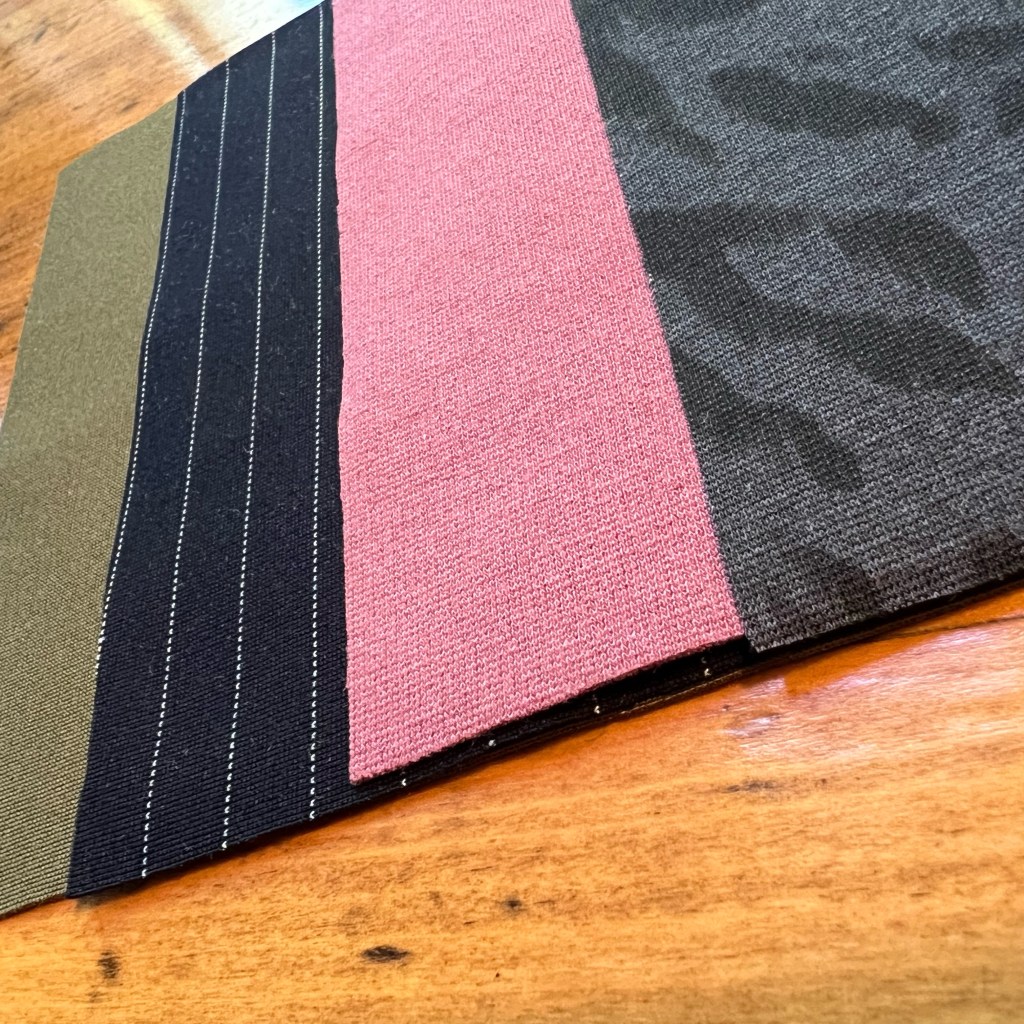In a Zoom call, Michelle of SMF shared details about each fabric including material content, colorways, and the patterns it would be ideal for. Meanwhile, each participant across the US and Canada could look at the same fabric because we all received a color-graded stack of the fabric in advance.