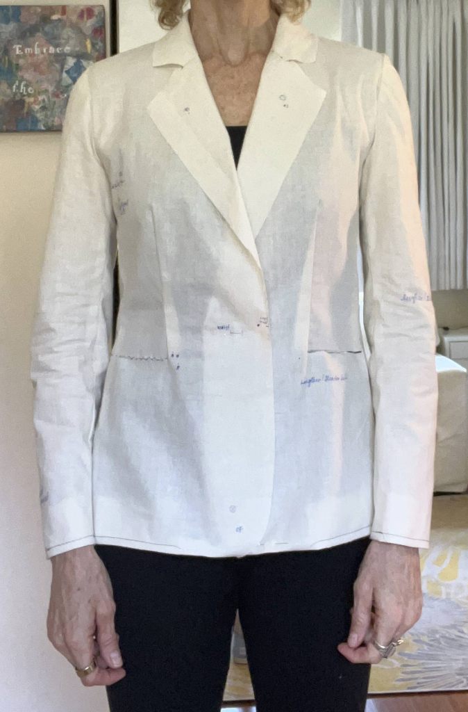 Seeing these issues is the whole purpose of making another test garment. I need to do more work before going to the final garment. While it may be disheartening to continue to work on fit, this jacket will take a long time to make and I want to ensure that it will fit well when I’m done. I am glad that I’m in Beth Galvin’s Intro to Tailoring class through Hello Stitch so that I can get her expert guidance on what’s wrong and how to fix it.
