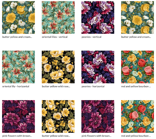 I designed not just one but six floral textile fabrics in both horizontal and vertical versions!