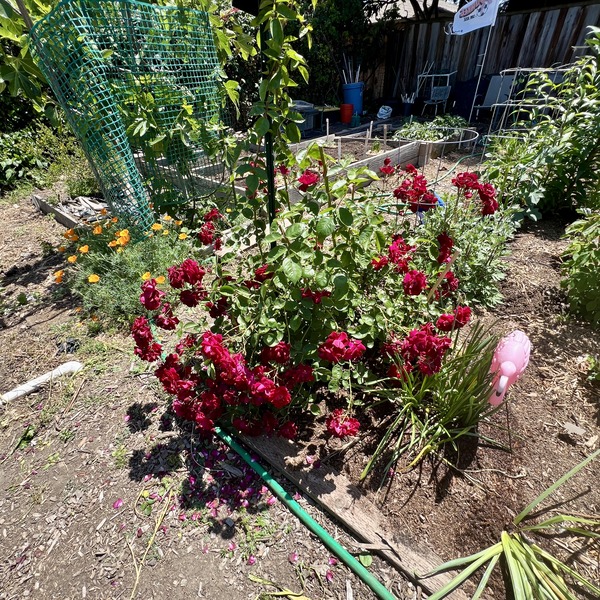 I waited and tended. In January 2025 bountiful rose leaves unfolded a good deep healthy green. I couldn’t believe my eyes. In February, I had a yard of compost delivered to the plot for hygiene and health. The rose grew more good deep healthy leaves.