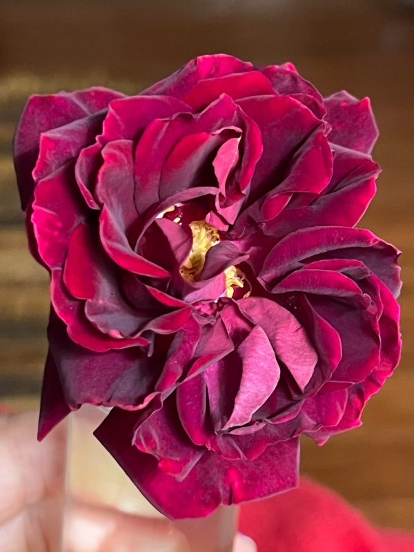 In April, a bud opened into the first flower I had seen on this plant. It was a deep velvet dark red. I was over the moon! A healthy blooming rose from scorched earth.