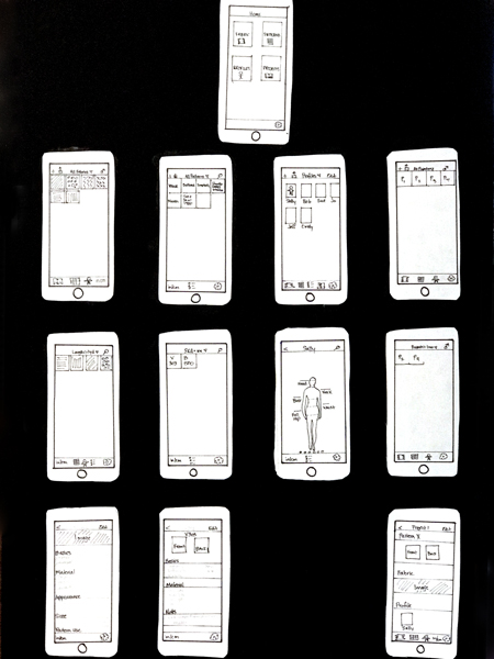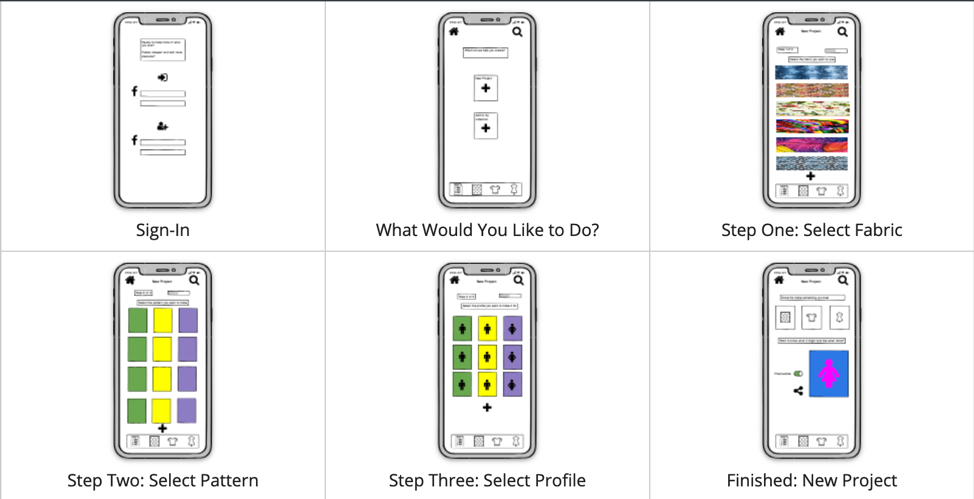 Prototypes approach or deliver the full functionality of the app. There are several different prototyping tools. The first row of prototypes below was done in Sketch App.